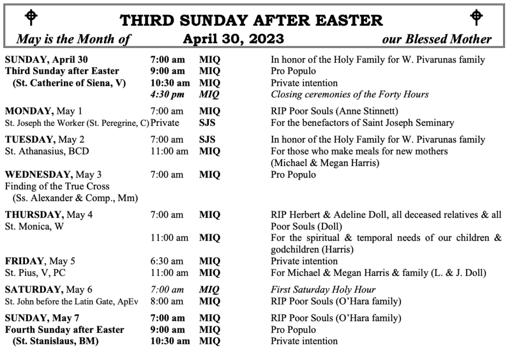 MOUNT SAINT MICHAEL’S MASS SCHEDULE