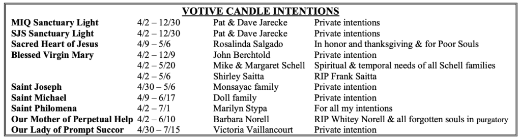 VOTIVE CANDLE INTENTIONS