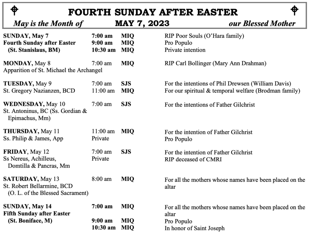 MOUNT SAINT MICHAEL’S MASS SCHEDULE