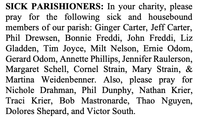 SICK PARISHIONERS