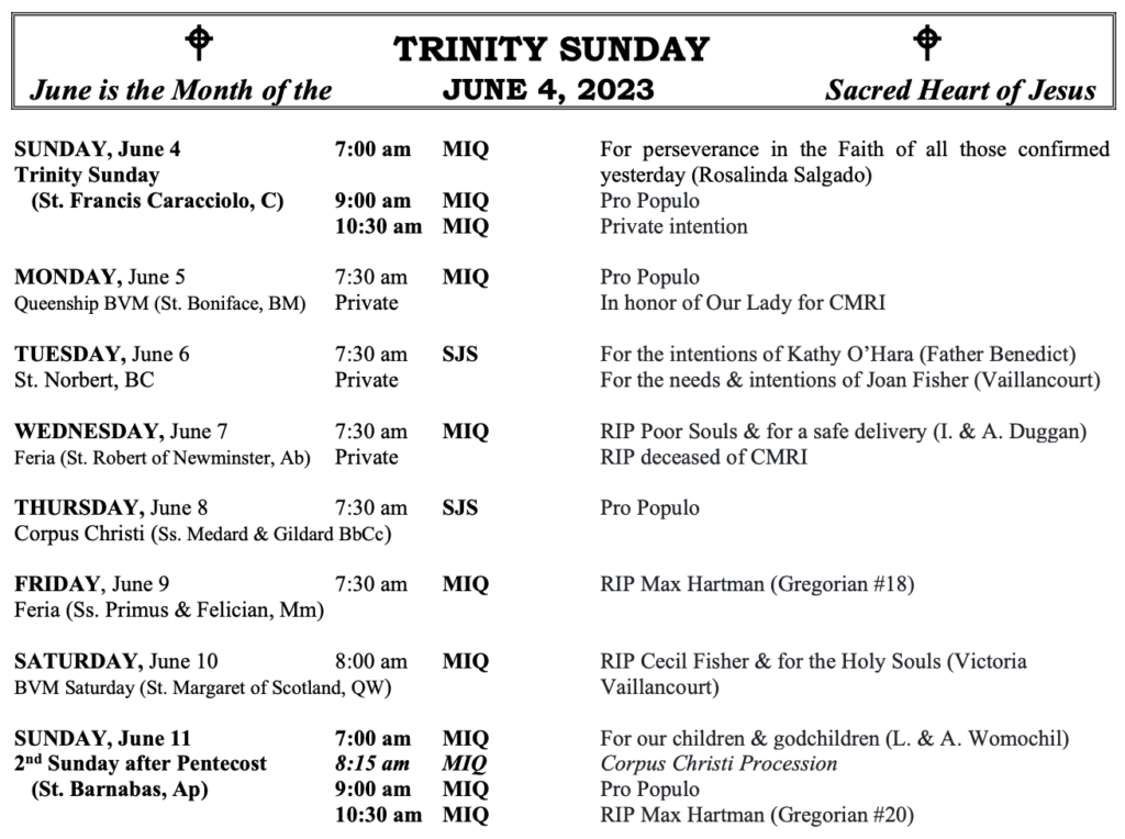 MOUNT SAINT MICHAEL’S MASS SCHEDULE