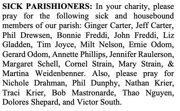 SICK PARISHIONERS