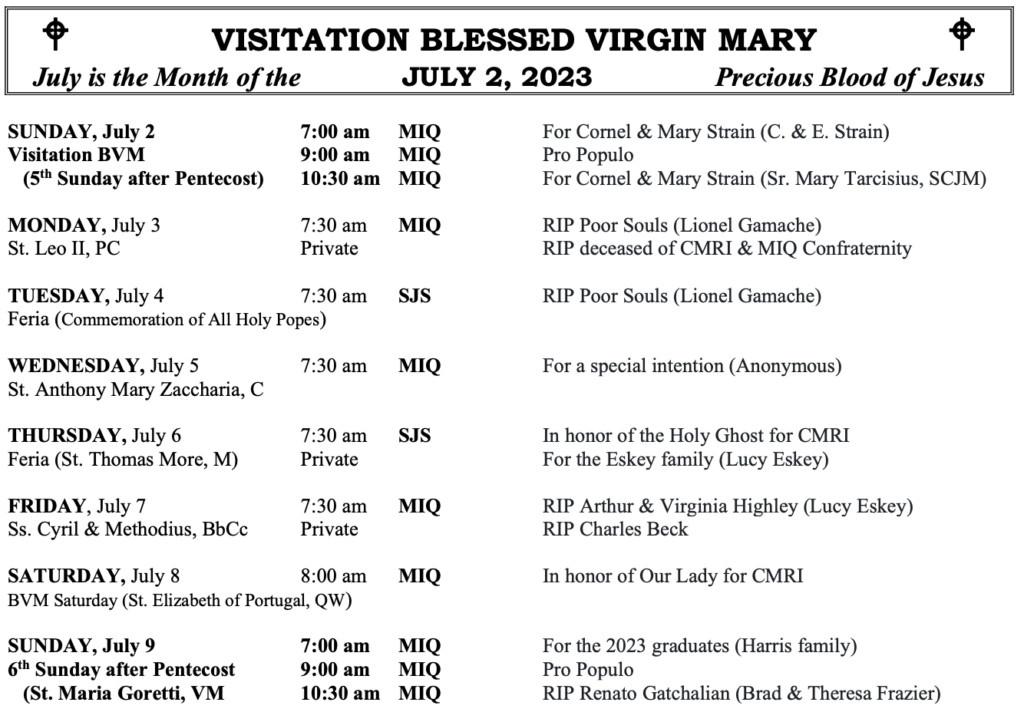 MOUNT SAINT MICHAEL’S MASS SCHEDULE