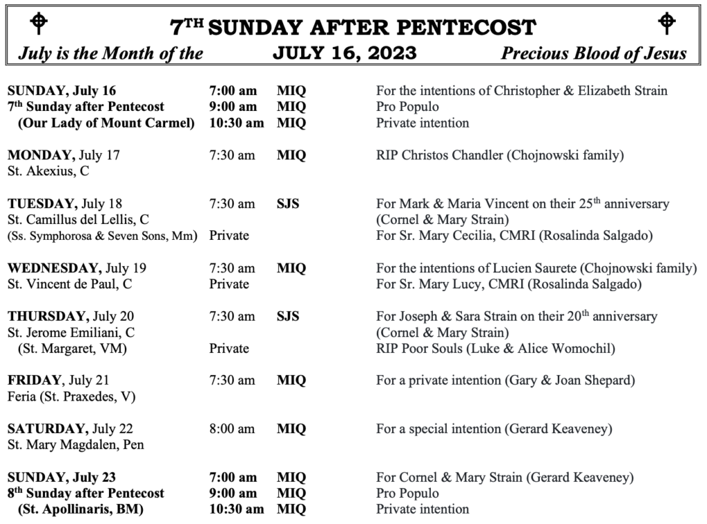 MOUNT SAINT MICHAEL’S MASS SCHEDULE