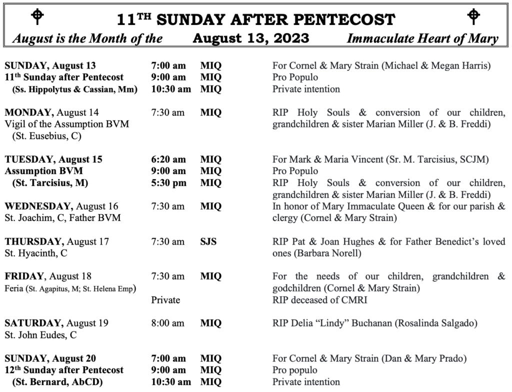 MOUNT SAINT MICHAEL’S MASS SCHEDULE