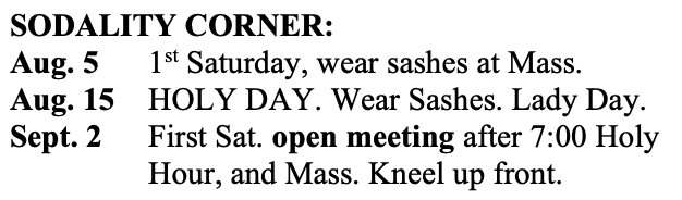 SODALITY CORNER