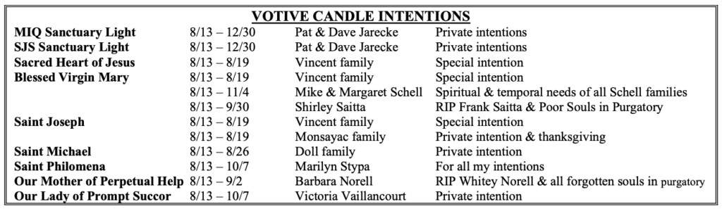 VOTIVE CANDLE INTENTIONS