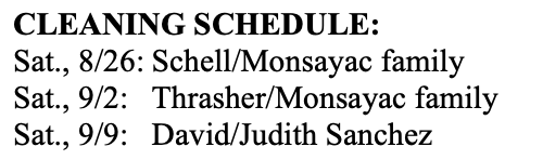 CLEANING SCHEDULE