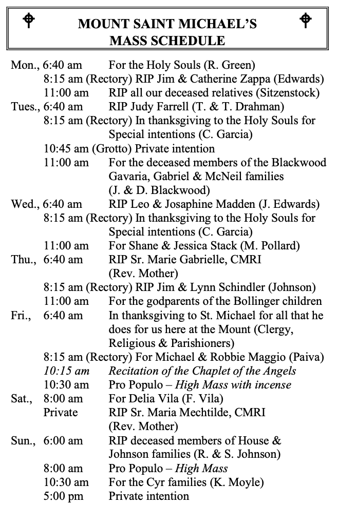 MOUNT SAINT MICHAEL’S MASS SCHEDULE