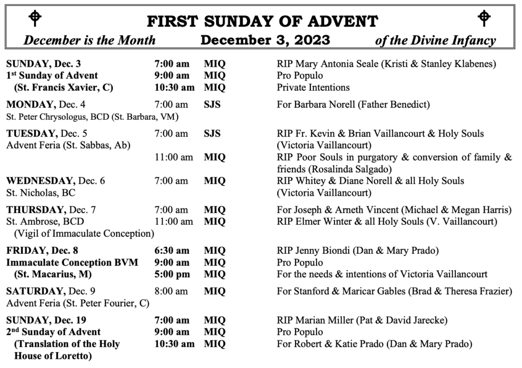 MOUNT SAINT MICHAEL’S MASS SCHEDULE