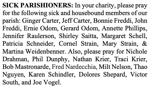SICK PARISHIONERS