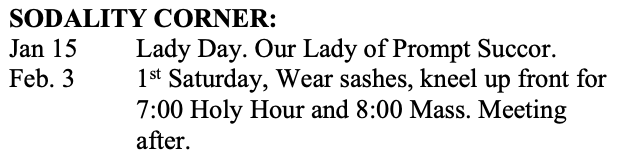 SODALITY CORNER