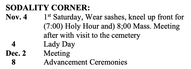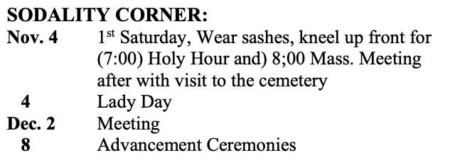 SODALITY CORNER