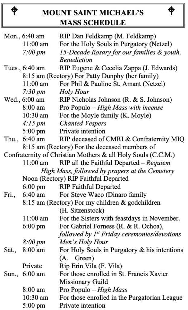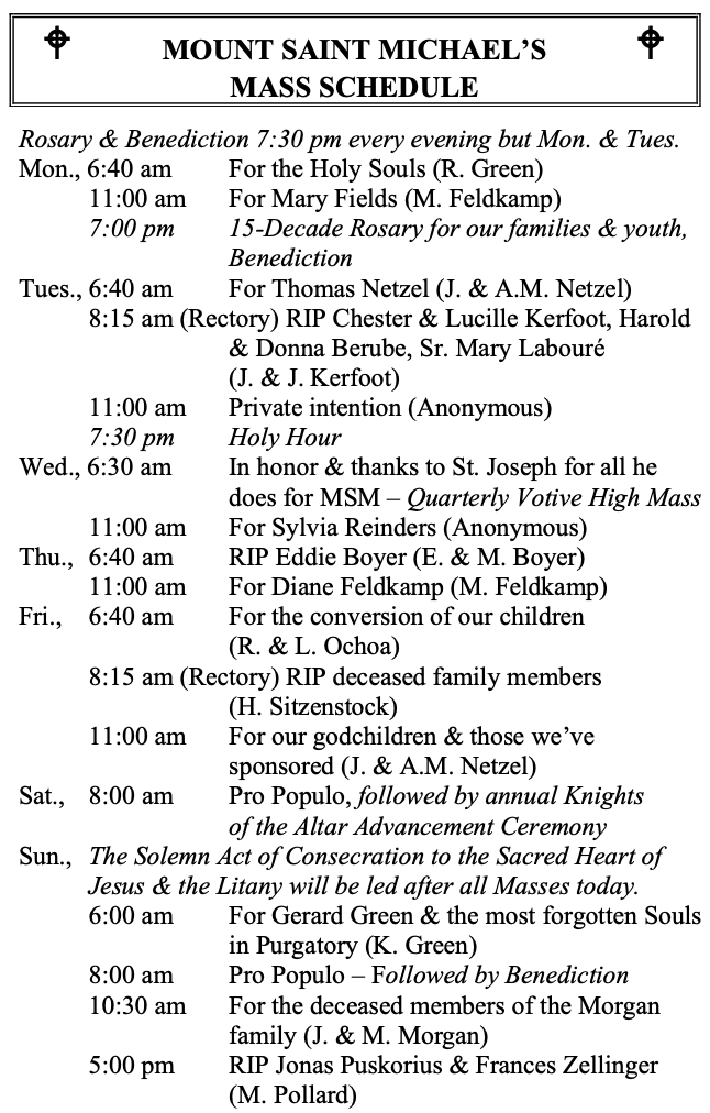 MOUNT SAINT MICHAEL’S MASS SCHEDULE