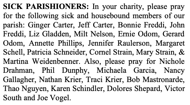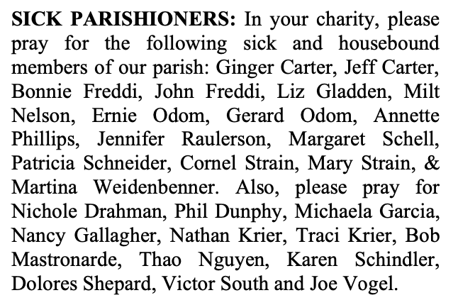 SICK PARISHIONERS