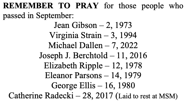There will be a Rosary procession this Wed., Sept. 13, at 6:30 pm at the City of Mary. The Rosary will also be recited in the church for those unable to walk in procession.