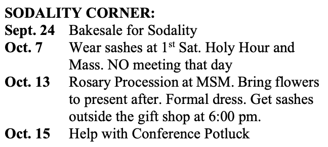 SODALITY CORNER