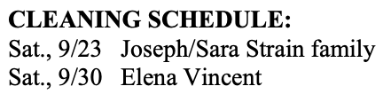 CLEANING SCHEDULE