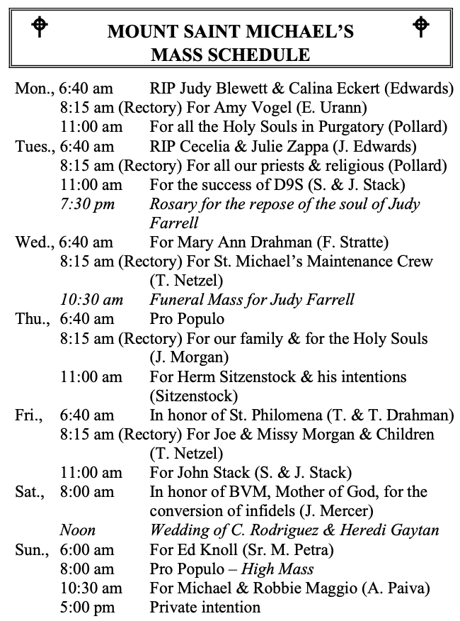 MOUNT SAINT MICHAEL’S MASS SCHEDULE